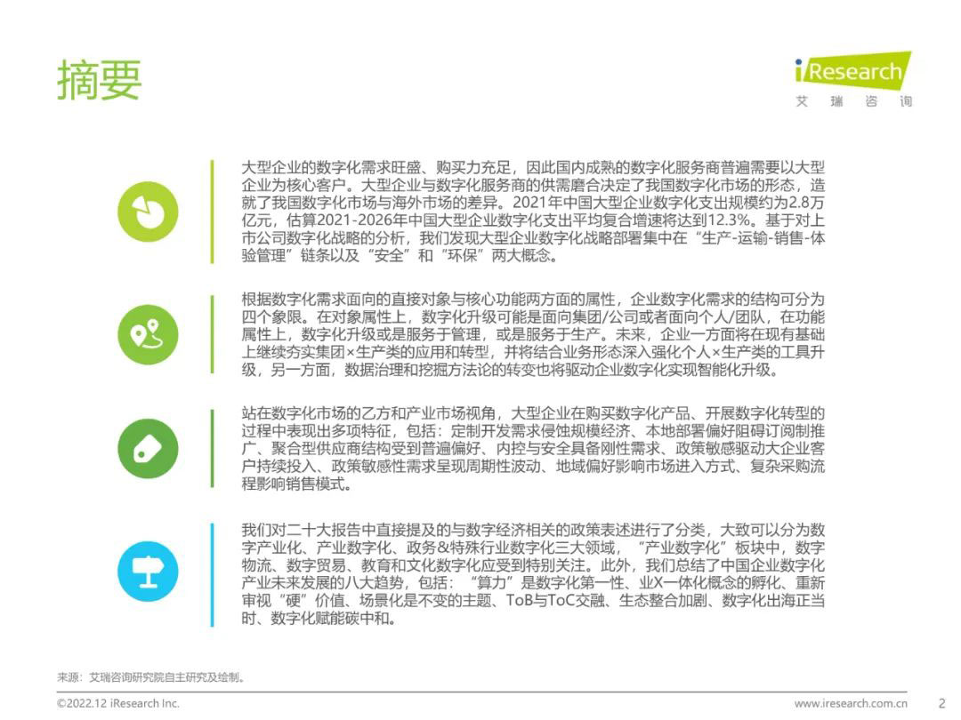 2021年大型企业数字化支出约2.8万亿元,预计未来5年复合增速为12.3% 。