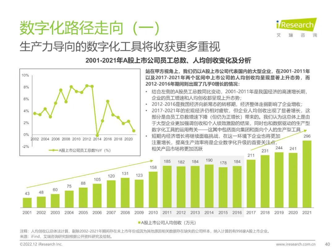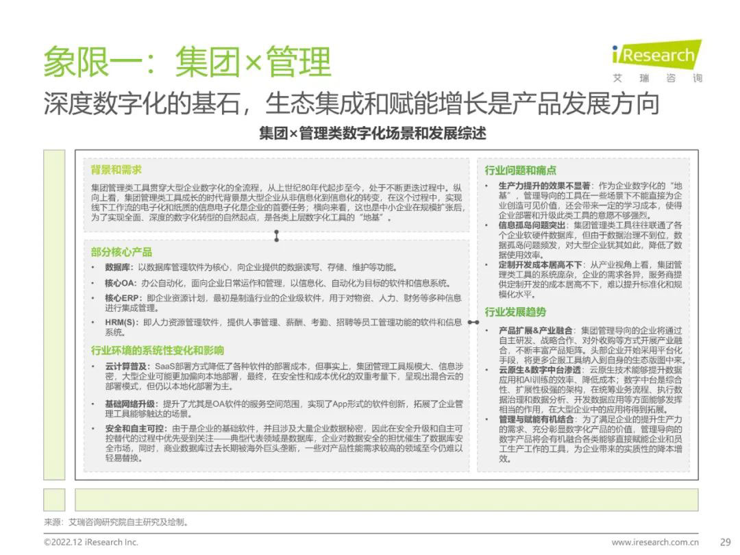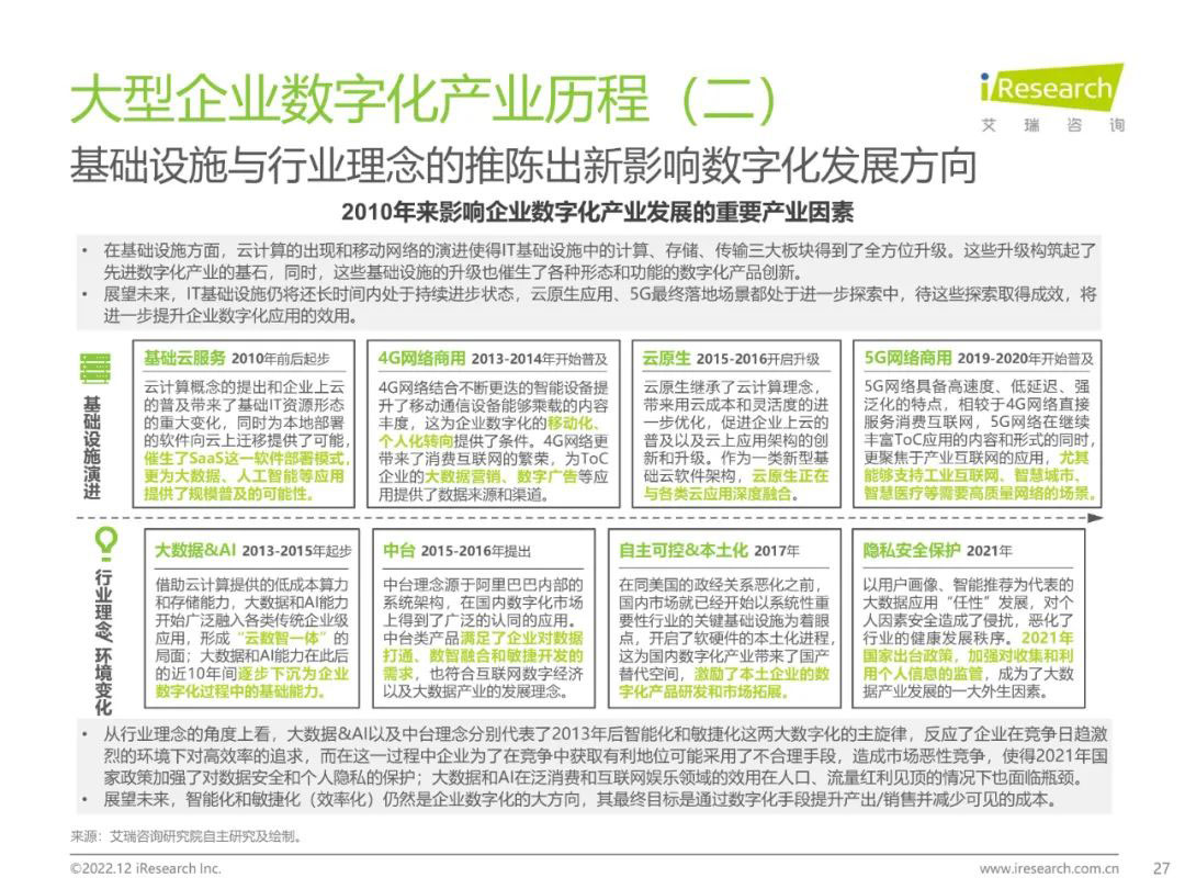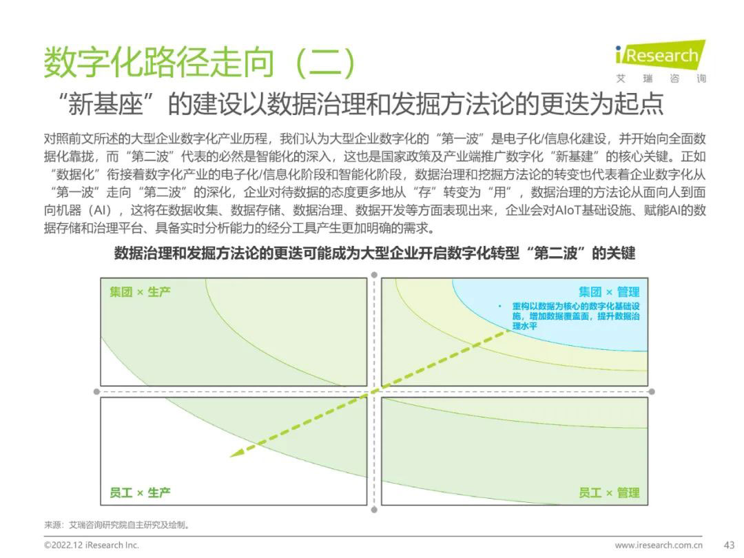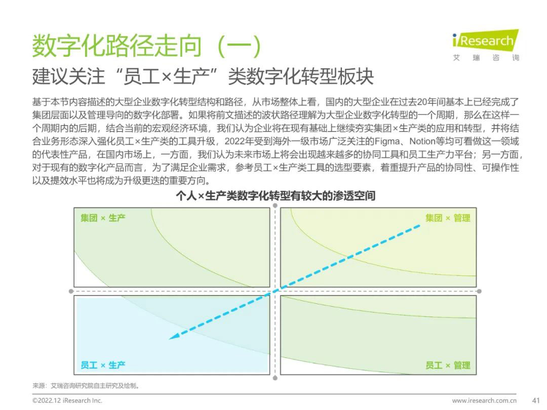本报告研究以大型企业为客户群的数字化市场,是由于大型企业的数字化需求旺盛、购买力充足,因此国内成熟的数字化服务商普遍需要以大型企业为核心客户。大型企业与数字化服务商的供需磨合决定了我国数字化市场的形态,造就了我国数字化市场与海外市场的差异。研究大型企业的数字化市场能够展现我国数字化行业的发展历史、现阶段的发展特征,也能够通过大型企业需求的变迁一窥数字化行业未来的发展轨迹。